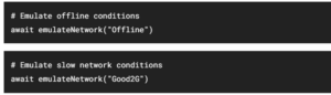 Offline support is essential for certain types of applications. For example, if you want a red banner to show up when an application is accessed in offline mode to prevent users from purchasing a product, this feature relies on the offline status. This can be tested by turning off the network or using Chrome DevTools to emulate offline mode. Taiko can also be used to do the same by using emulateNetwork API.
