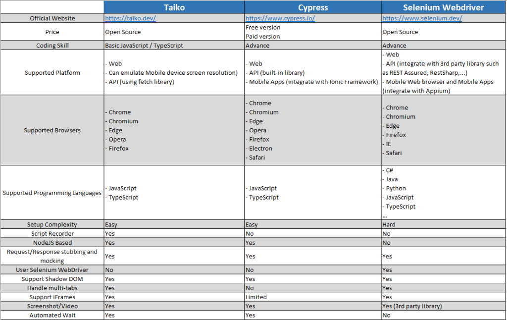 IV. Compare Taiko with other automation frameworks