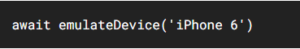 For example, we can simulate the screen of an iPhone 6 by using the emulateDevice API.