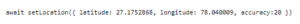 Then we call the setLocation API with lat, long and accuracy: