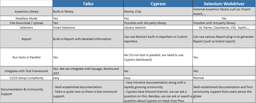 IV. Compare Taiko with other automation frameworks