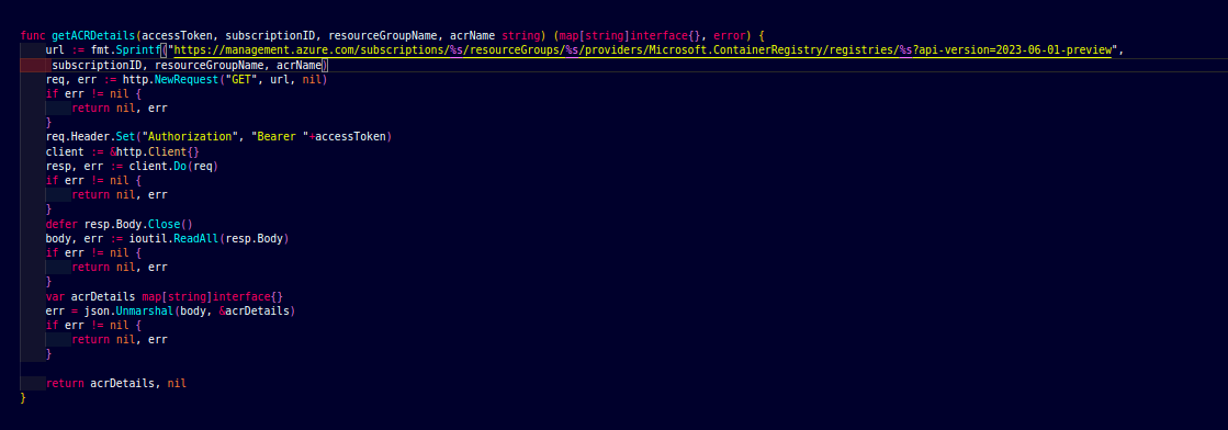 In this function, we will fetch the ACR details to fetch the network access from the JSON of ACR.