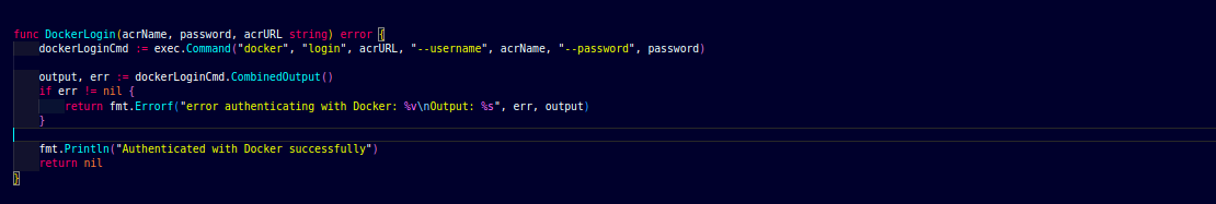 This function is use to authenticate to the ACR with the help of docker login:-
