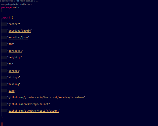 In this section, we will import the required packages for the terratest to run the test casesL-