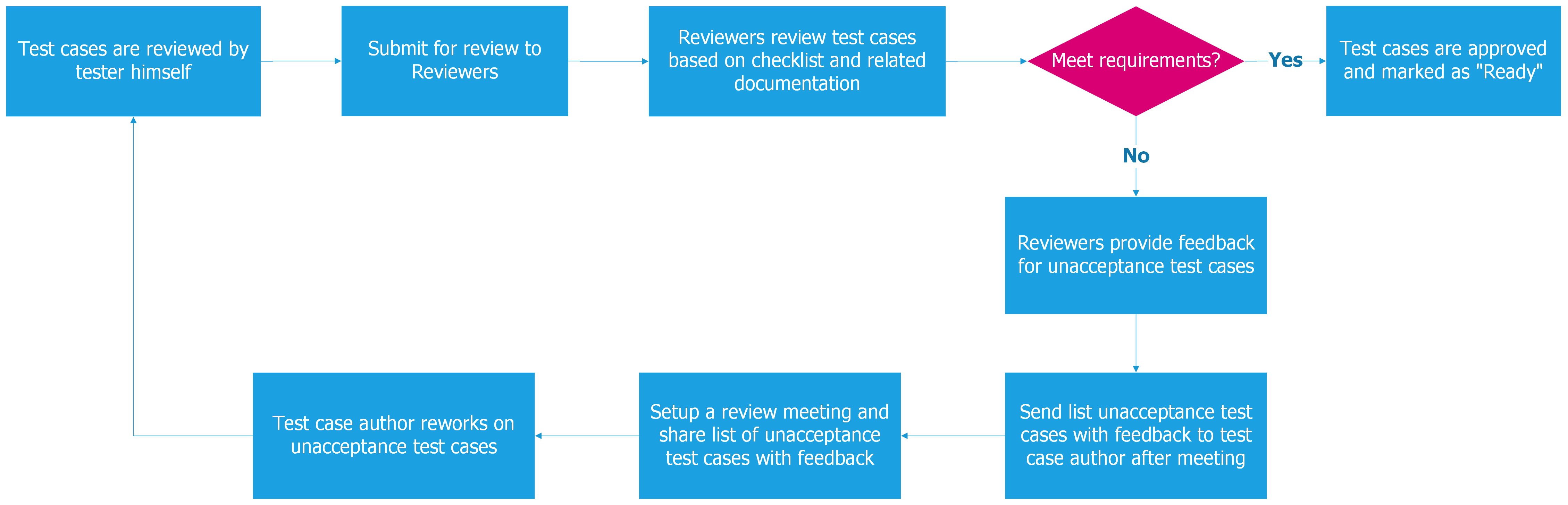 There are various types of test case review processes. However, the appropriate test case review process can be determined by factors such as project scale, project structure, software development methodology, and project-specific requirements.