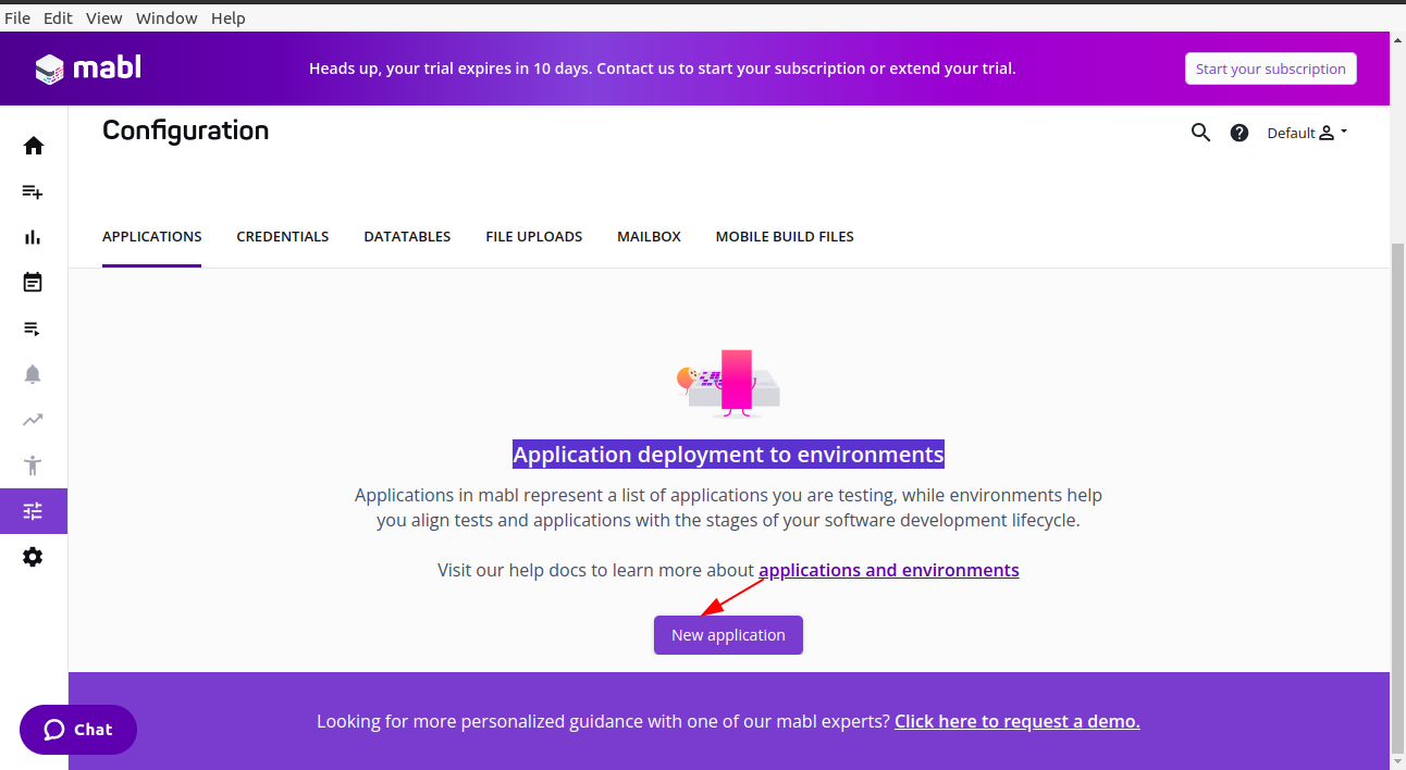Environments in Mabl are aligned with your development environment where you deploy your code, such as Dev, Testing, Staging, and Production.