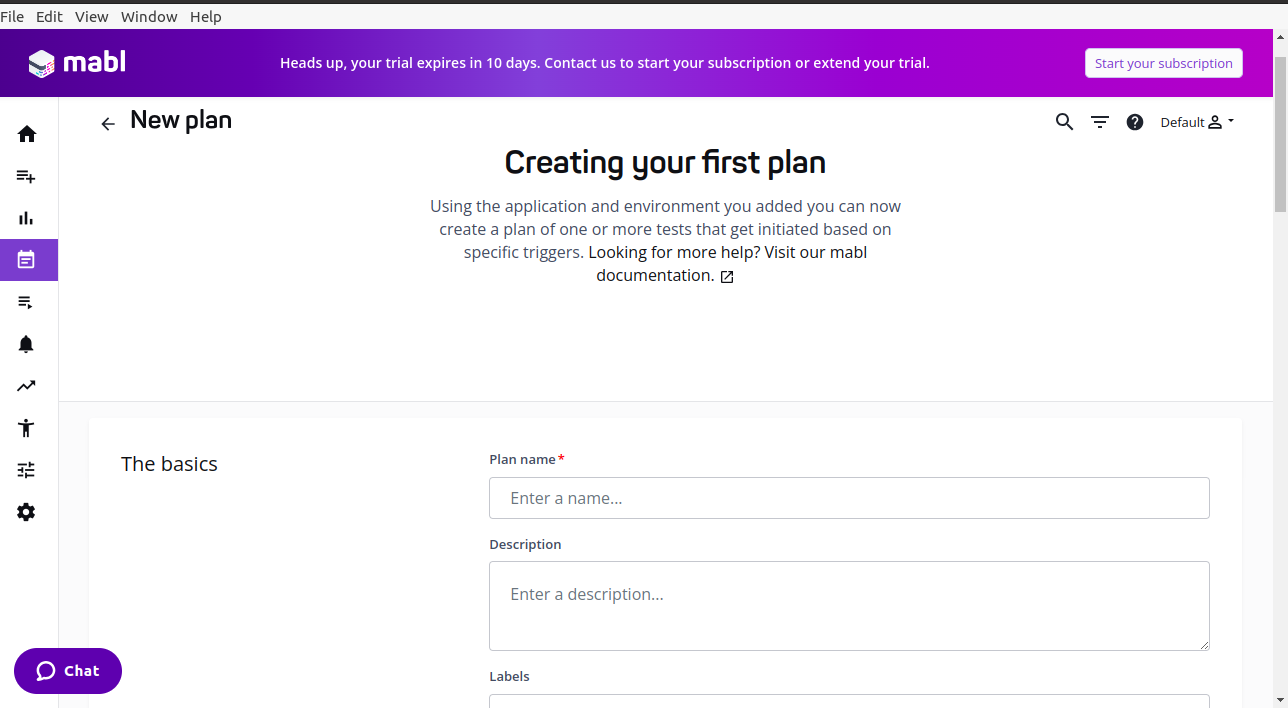 5.1.1 Create a Test- Click on Create My First Plan then this page will open.
