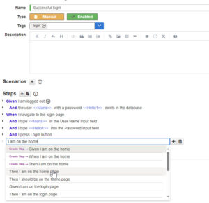 • Create steps for the test: Click on the plus icon beside label Steps to add steps.