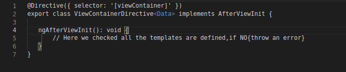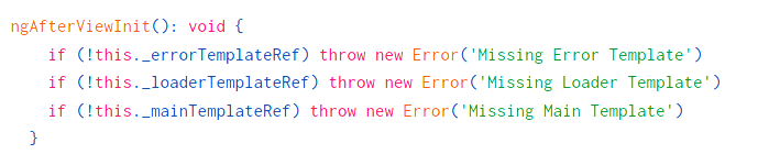 In the ngAfterViewInit we will check that all the templates exist. If one of the templates is missing we will get an error that’s hard to miss.