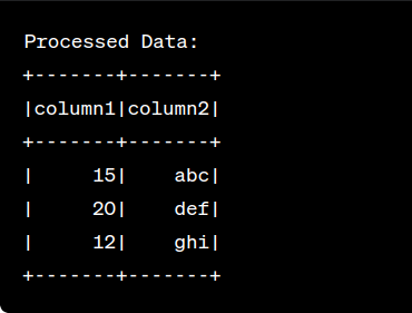 Dataset<Row> processedData = inputDataset.select("column1", "column2").filter("column1 > 10");