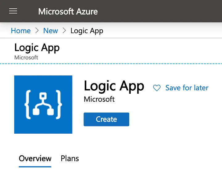 Once logged into the Azure Portal, click on “Create a resource,” search for “Logic App,” and click the “Create” button.