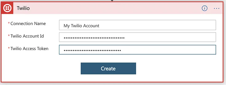 Before configuring the SMS action, fill out the connection form. Assign a name to your Connection Name and find your Account SID and Auth Token in your Twilio Dashboard.
