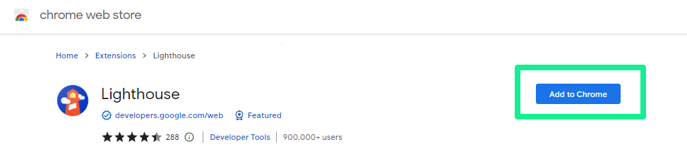Go to the Chrome Web store, search for Lighthouse, click Add to Chrome