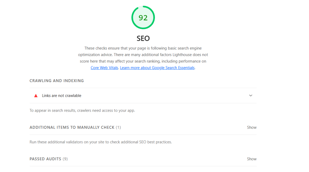 Google Lighthouse also evaluates progressive web apps, ensuring they meet essential criteria, such as service worker registration and offline capabilities. But sometimes you run a lighthouse audit on a regular web page most of the results here are not applicable.