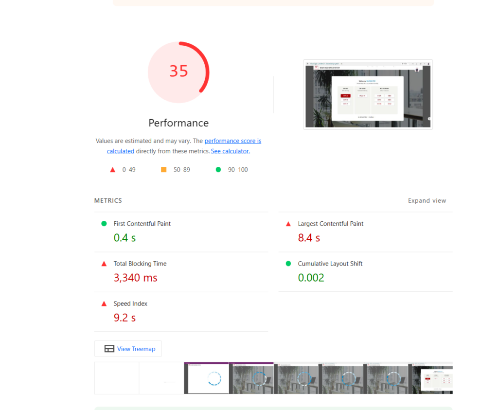 • Speed Index over 5.8 seconds — red, slow