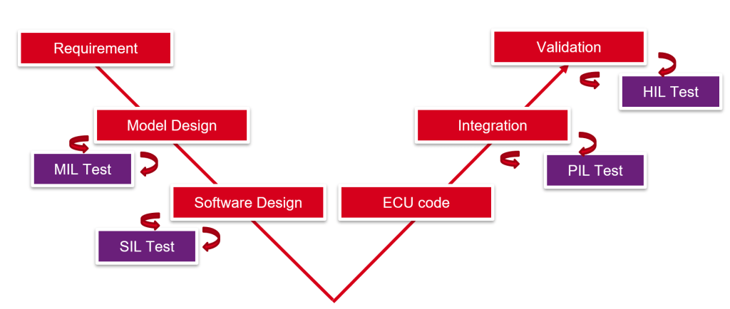 In software testing, it’s important to begin testing at an early stage in the development process. Similarly, in the automotive industry, testers need to use various test environments that are appropriate for different stages of development in the Model-Based Design approach. These are some common test environments used for testing before the model is deployed to hardware for the production: