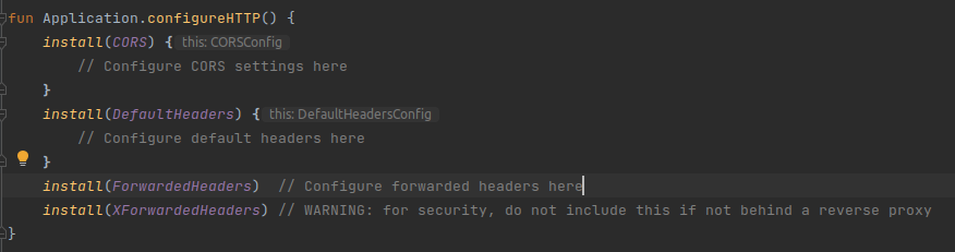 Open your HTTP.kt file located in the plugins directory, and add the following code to the configure HTTP function: