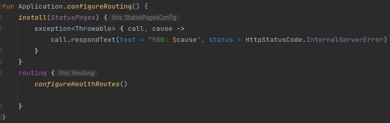 Within the configureRouting function, we configure the routing of our application. In your case, you have already defined the health route using the configureHealthRoutes function.