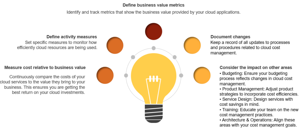 - Assessment: Determine the value derived from cloud investments relative to the costs.