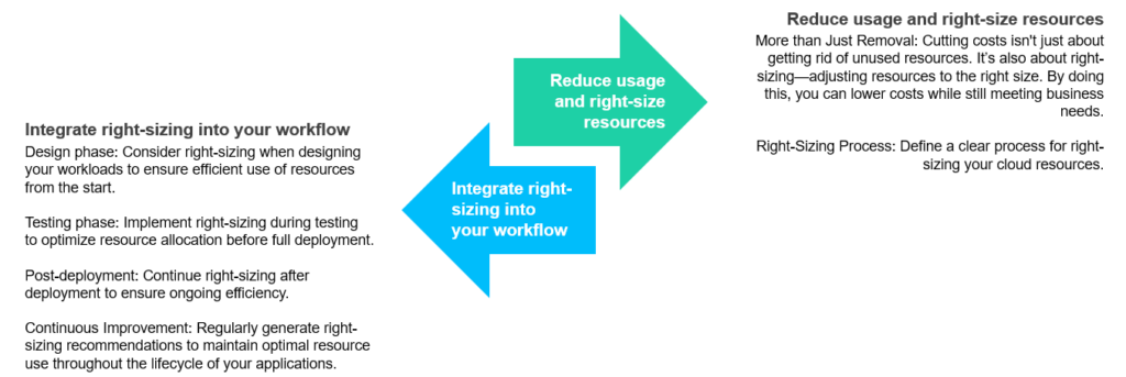 - Recommendations: Right-size resources to align with workload requirements, ensuring optimal utilization and cost-efficiency.