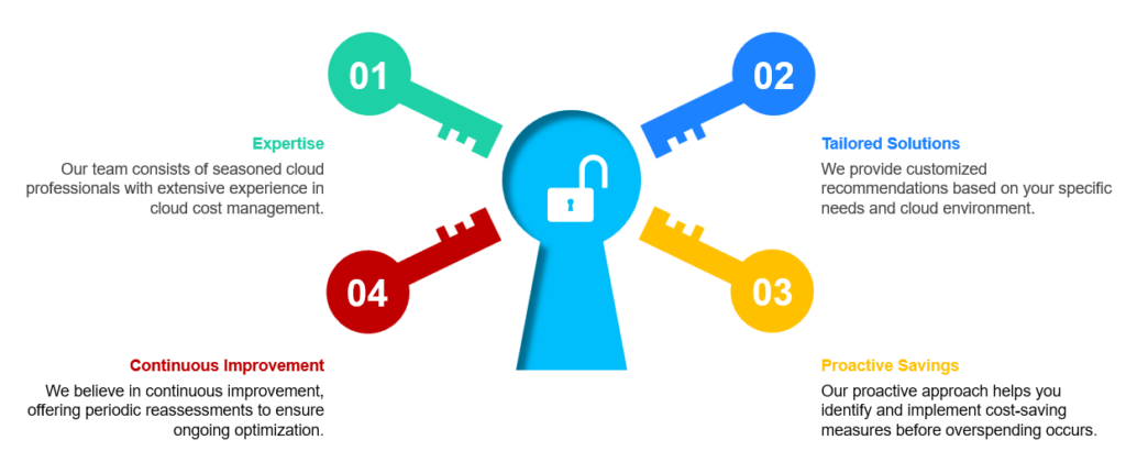 This service empowers clients with the knowledge and tools they need to optimize their cloud usage, leading to significant cost savings and improved operational efficiency. Highlight the tailored recommendations and actionable insights we provide to help clients achieve their financial goals in the cloud.