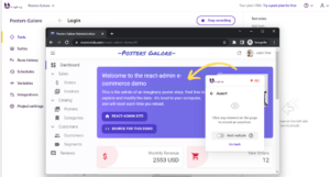 The simplest way of checking if the login has been successful is to check if the page shows some specific text. In our case we can assert if the text “Welcome to the react admin e-commerce demo” is visible. If it is visible everything is fine, if not, the test will fail.
