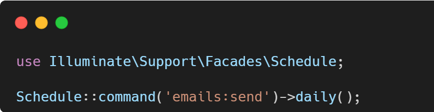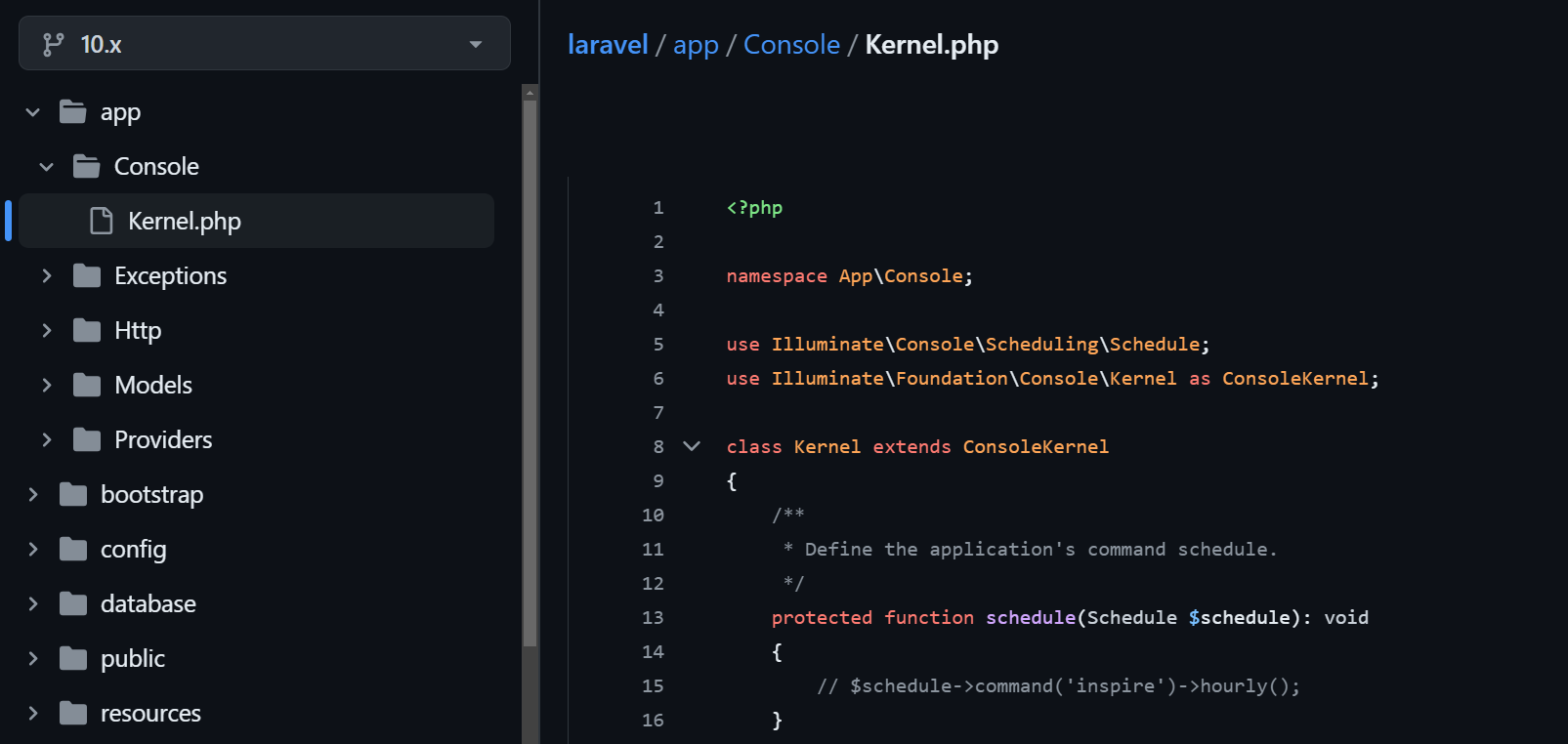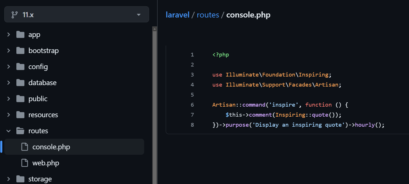 With a new Schedule facade, we now can directly define scheduled tasks in the application’s routes/console.php file, which eliminates the need for a separate console “kernel” class.
