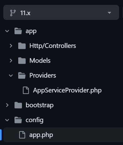 Instead of the default Laravel application structure containing five service providers, Laravel 11 only includes a single AppServiceProvider class. The framework now incorporates the functionalities of service providers into the bootstrap/app.php, and manages them automatically.