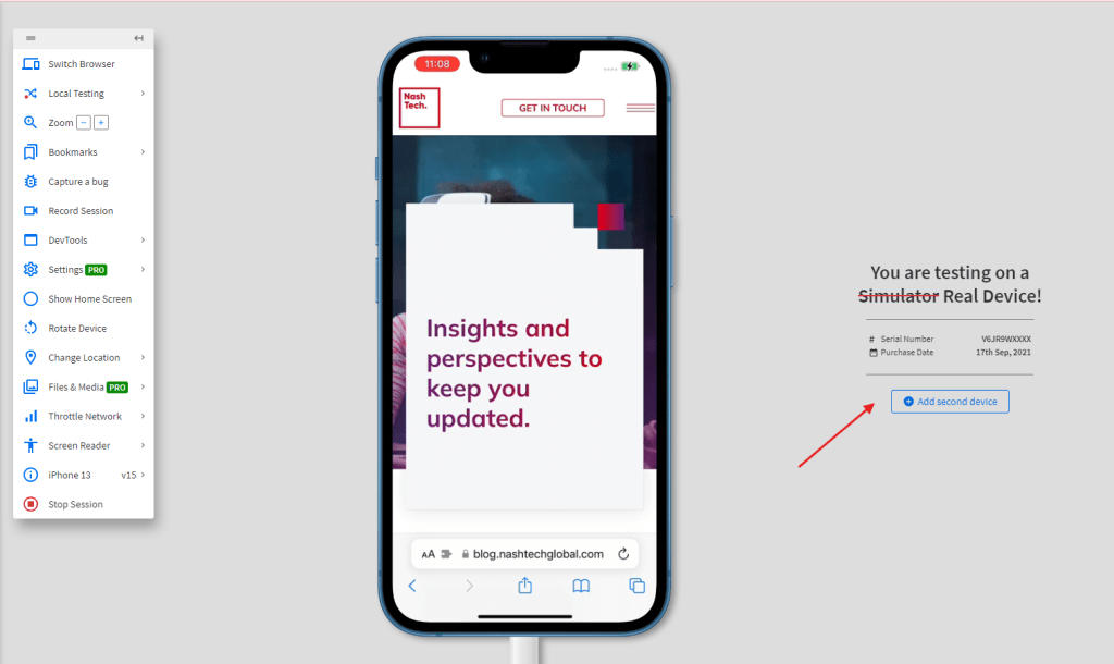 - Repeat for Different Devices and Browsers: To ensure comprehensive testing, repeat the above steps for different device and browser combinations. BrowserStack makes it easy to switch between configurations and conduct testing across a wide range of environments.