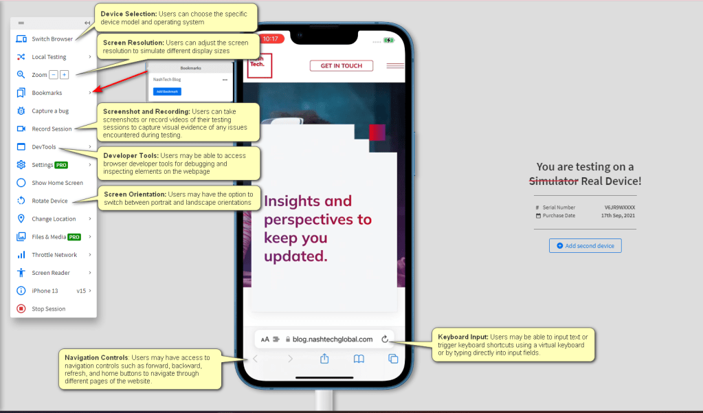 - Real Device Testing: While virtual testing is convenient, validating on real devices is crucial for an authentic user experience. Ensure testing across a spectrum of devices including smartphones, tablets, and various models.