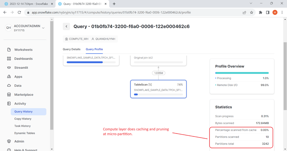 – Compute layer does caching and pruning at micro-partition level as well.