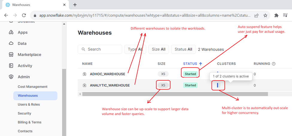 This compute scaling model is the first introduced in the market, way ahead of its competitors. Also, this scaling model later translated to a good billing model giving snowflake’s customer the impression of easy to use yet powerful platform.