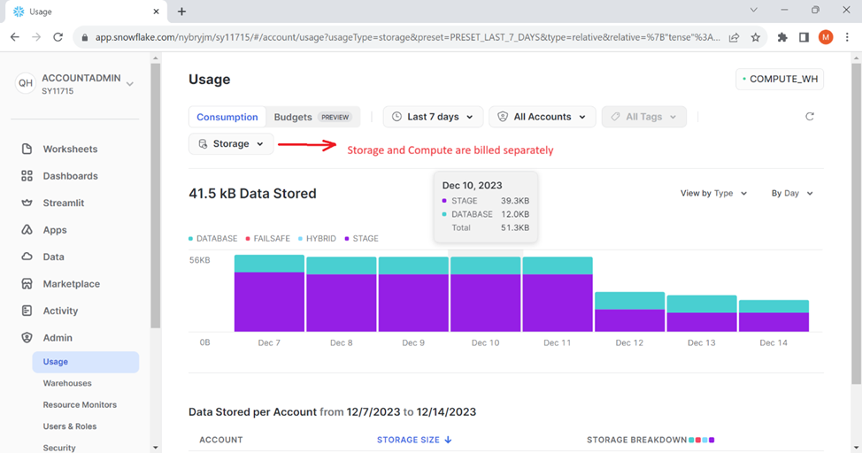 – Snowflake storage layer is nearly unlimited.