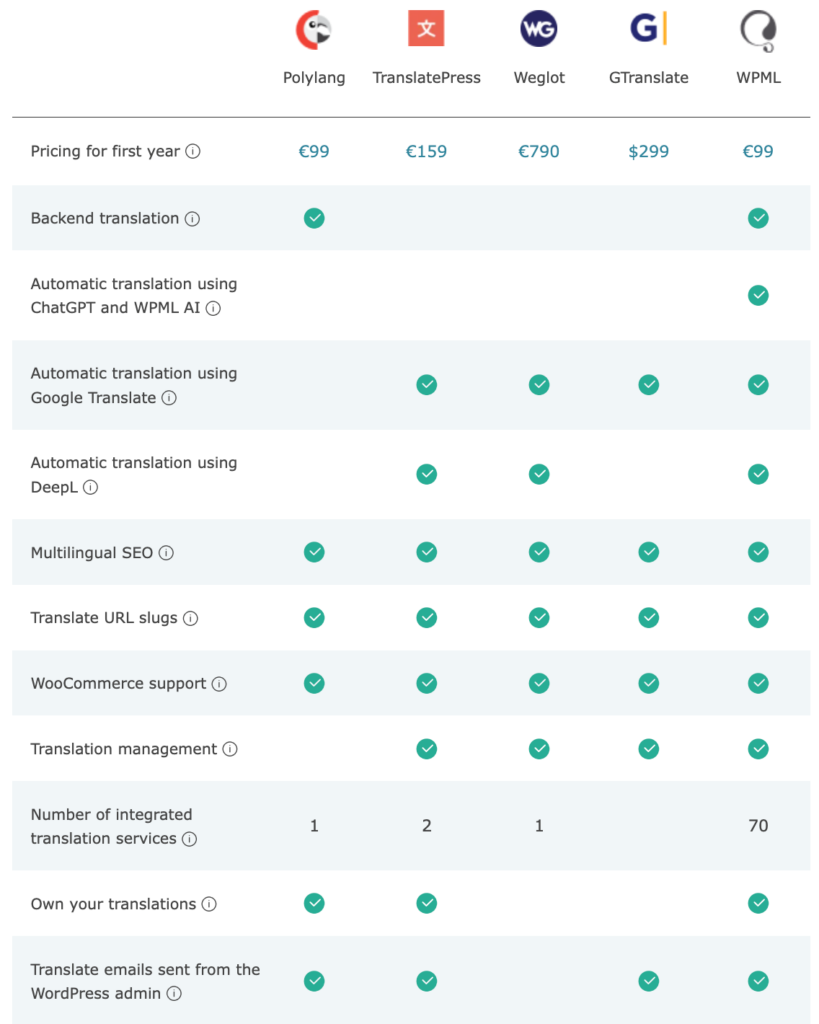 3. Comparision between WPML and others