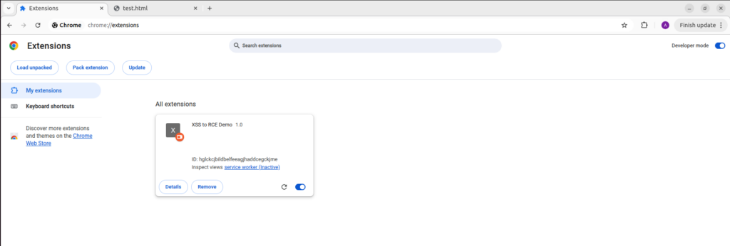Now, the extension could download a malicious file or even give remote access to your system; this is how XSS turns into RCE.