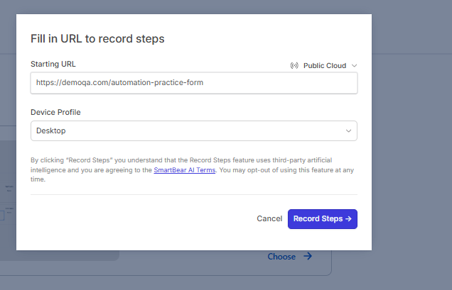 - Create new automated test cases by recording real user actions, which are automatically converted into executable test steps