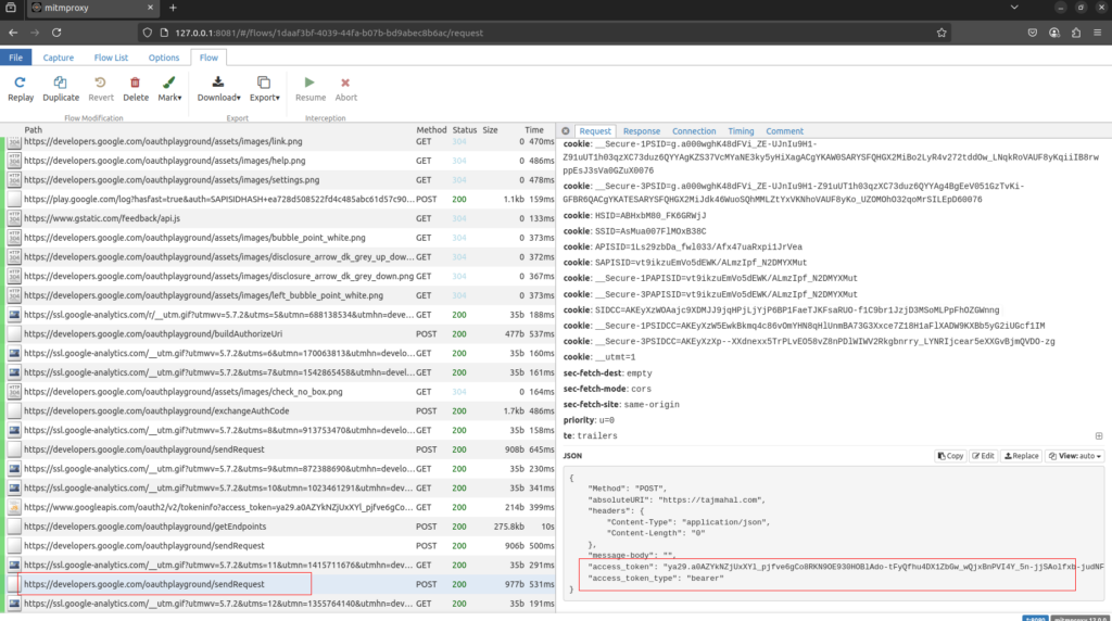 mitmproxyto intercept the OAuth flow. - Capture the authorisation code issued by the OAuth provider.